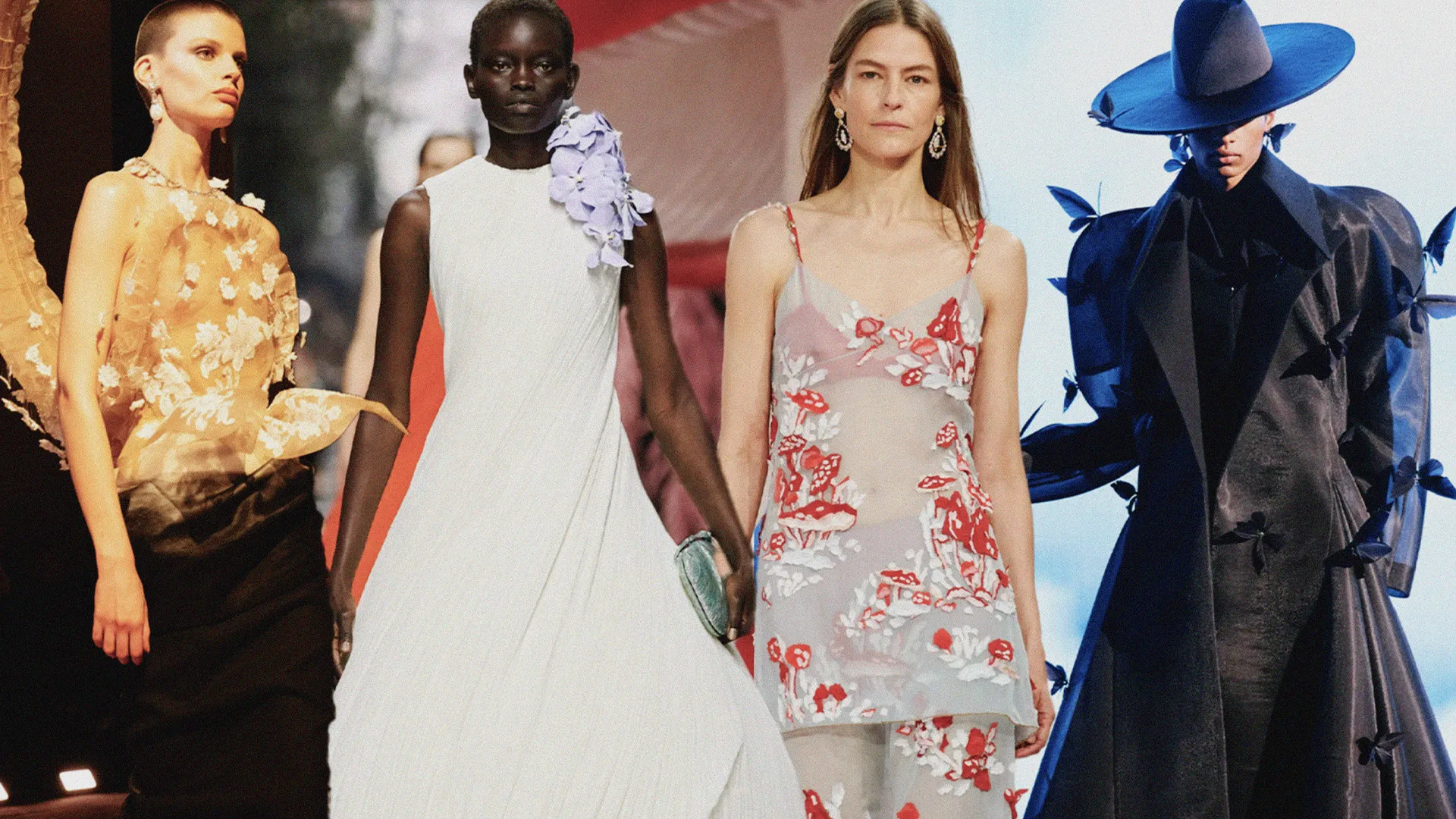 Feathers, sheer organza reinterpretations, and nature-inspired motifs dominated. But the real trend was lightness — both literal and emotional — achieved through masterful construction.